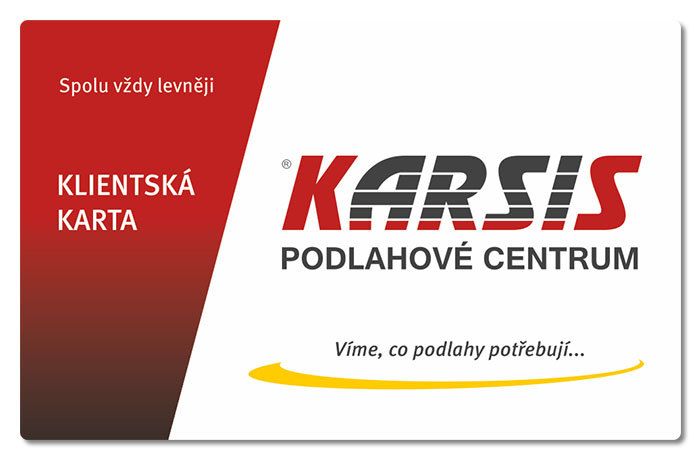 V prodejně PODLAHOVÉ CENTRUM společnosti KARSIS s.r.o. získáte při jednorázovém nákupu nad 6 000 Kč KLIENTSKOU KARTU pro uplatnění výhody okamžité slevy na zboží. Proč se Vám vyplatí Kartu získat nebo ji mít při nákupu u sebe?